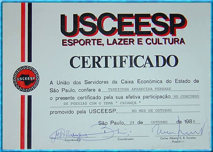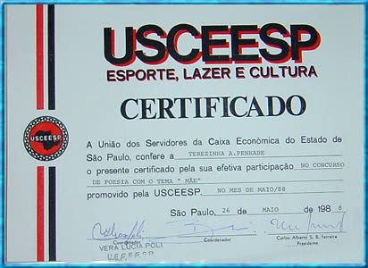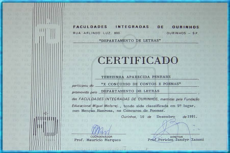 no Concurso de Poemas. Ourinhos-SP 10/12/1991